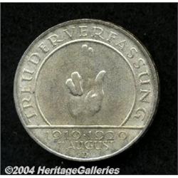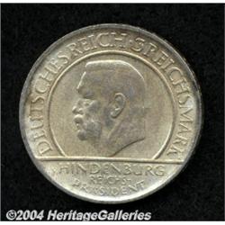 <B>Weimar Republic. Constitution 3 Mark 1929-D,</B></I> KM63 BU. <BR><BR><B>Important notice:</B> Heritage usually auctions material at the rate of 200-250 lots per hour. On some occasions eBay Live bid software or the Internet may not be able to keep up with the pace of the auction. We recommend placing a realistic absentee bid now as insurance to avoid disappointment. Occasionally the auctioneer may eliminate or reject an eBay Live bid, and the auctioneer may also reopen a lot after the close of the eBay live bidding (usually because we missed an audience bid), and may reject your bid even if it shows you as the winning bidder. By bidding via eBay Live, you agree that Heritage may award the lot to another bidder at its sole discretion under the circumstances described above or any other reasonable circumstances. Since eBay bids are not shown to us until we open the lot on the floor, we treat those bids just like floor bids. In most cases the floor responds before the eBay bid is presented to us, due to Internet lag time, so for consistency we have made it a policy that floor bids are always considered first over tie eBay live bids. Also please note that all Heritage lots purchased through eBay Live carry a 20% Buyer's Premium. Please make sure you read the Terms and Conditions before you bid.