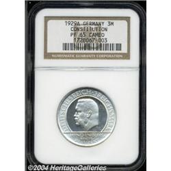 Weimar Republic. Constitution 3 Mark 1929A, KM63, Proof 65 Cameo NGC, very scarce. Important notice: Heritage usually auctions material at the rate of 200-250 lots per hour. On some occasions eBay Live bid software or the Internet may not be able to keep up with the pace of the auction. We recommend placing a realistic absentee bid now as insurance to avoid disappointment. Occasionally the auctioneer may eliminate or reject an eBay Live bid, and the auctioneer may also reopen a lot after the close of the eBay live bidding (usually because we missed an audience bid), and may reject your bid even if it shows you as the winning bidder. By bidding via eBay Live, you agree that Heritage may award the lot to another bidder at its sole discretion under the circumstances described above or any other reasonable circumstances. Also please note that all Heritage lots purchased through eBay Live carry a 20% Buyer's Premium. Please make sure you read the Terms and Conditions before you bid.
