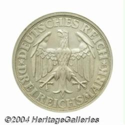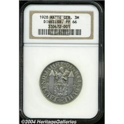 Weimar Republic. Dinkelsbuhl Matte Proof 3 mark 1928D, KM59, J-334, Matte Proof 66 NGC. Extremely rare and the first Matte Proof example that we have seen. We can find no listing of this type as a Matte Proof.From the Osage Collection. Important notice: Heritage usually auctions material at the rate of 200-250 lots per hour. On some occasions eBay Live bid software or the Internet may not be able to keep up with the pace of the auction. We recommend placing a realistic absentee bid now as insurance to avoid disappointment. Occasionally the auctioneer may eliminate or reject an eBay Live bid, and the auctioneer may also reopen a lot after the close of the eBay live bidding (usually because we missed an audience bid), and may reject your bid even if it shows you as the winning bidder. By bidding via eBay Live, you agree that Heritage may award the lot to another bidder at its sole discretion under the circumstances described above or any other reasonable circumstances. Also please note that all Heritage lots purchased through eBay Live carry a 20% Buyer's Premium. Please make sure you read the Terms and Conditions before you bid.