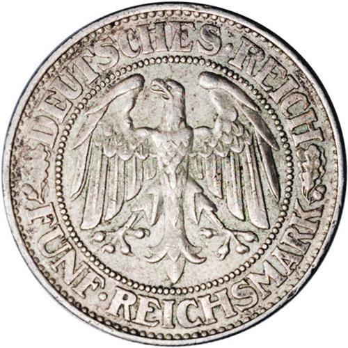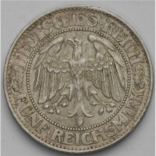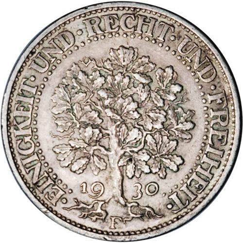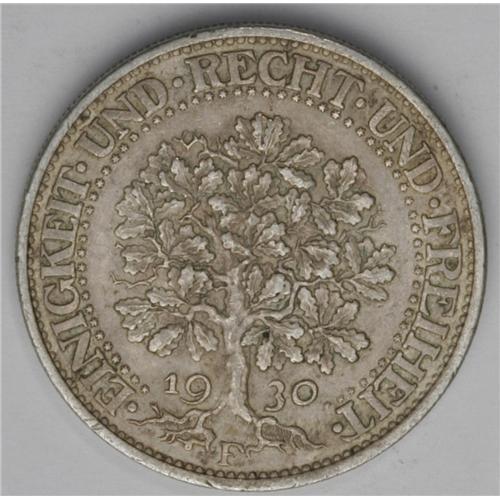 Weimar Republic. Oak Tree 5 Marks 1930F, KM56, Choice V Weimar Republic. Oak Tree 5 Marks 1930F,