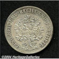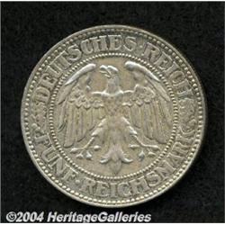 <B>Weimar Republic. Oaktree 5 Mark 1927-F,</B></I> KM56 XF. <BR><BR><B>Important notice:</B> Heritage usually auctions material at the rate of 200-250 lots per hour. On some occasions eBay Live bid software or the Internet may not be able to keep up with the pace of the auction. We recommend placing a realistic absentee bid now as insurance to avoid disappointment. Occasionally the auctioneer may eliminate or reject an eBay Live bid, and the auctioneer may also reopen a lot after the close of the eBay live bidding (usually because we missed an audience bid), and may reject your bid even if it shows you as the winning bidder. By bidding via eBay Live, you agree that Heritage may award the lot to another bidder at its sole discretion under the circumstances described above or any other reasonable circumstances. Since eBay bids are not shown to us until we open the lot on the floor, we treat those bids just like floor bids. In most cases the floor responds before the eBay bid is presented to us, due to Internet lag time, so for consistency we have made it a policy that floor bids are always considered first over tie eBay live bids. Also please note that all Heritage lots purchased through eBay Live carry a 20% Buyer's Premium. Please make sure you read the Terms and Conditions before you bid.
