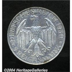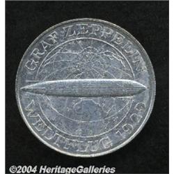 <B>Weimar Republic. Zeppelin 5 Mark 1930-G, </B></I>KM68, lustrous AU-UNC, scarce and popular type. <BR><BR><B>Important notice:</B> Heritage usually auctions material at the rate of 200-250 lots per hour. On some occasions eBay Live bid software or the Internet may not be able to keep up with the pace of the auction. We recommend placing a realistic absentee bid now as insurance to avoid disappointment. Occasionally the auctioneer may eliminate or reject an eBay Live bid, and the auctioneer may also reopen a lot after the close of the eBay live bidding (usually because we missed an audience bid), and may reject your bid even if it shows you as the winning bidder. By bidding via eBay Live, you agree that Heritage may award the lot to another bidder at its sole discretion under the circumstances described above or any other reasonable circumstances. Since eBay bids are not shown to us until we open the lot on the floor, we treat those bids just like floor bids. In most cases the floor responds before the eBay bid is presented to us, due to Internet lag time, so for consistency we have made it a policy that floor bids are always considered first over tie eBay live bids. Also please note that all Heritage lots purchased through eBay Live carry a 20% Buyer's Premium. Please make sure you read the Terms and Conditions before you bid.