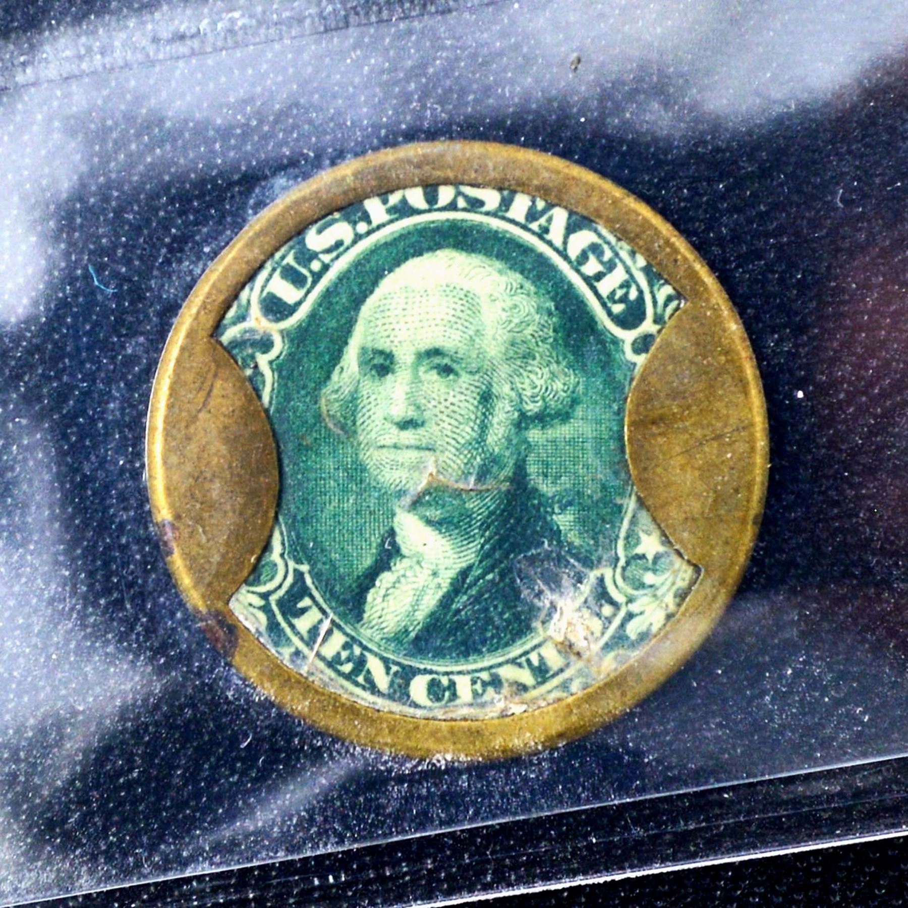 Weir & Larminie, Montreal Encased US Postage Stamp 10c Washington Green ICCS VF-20