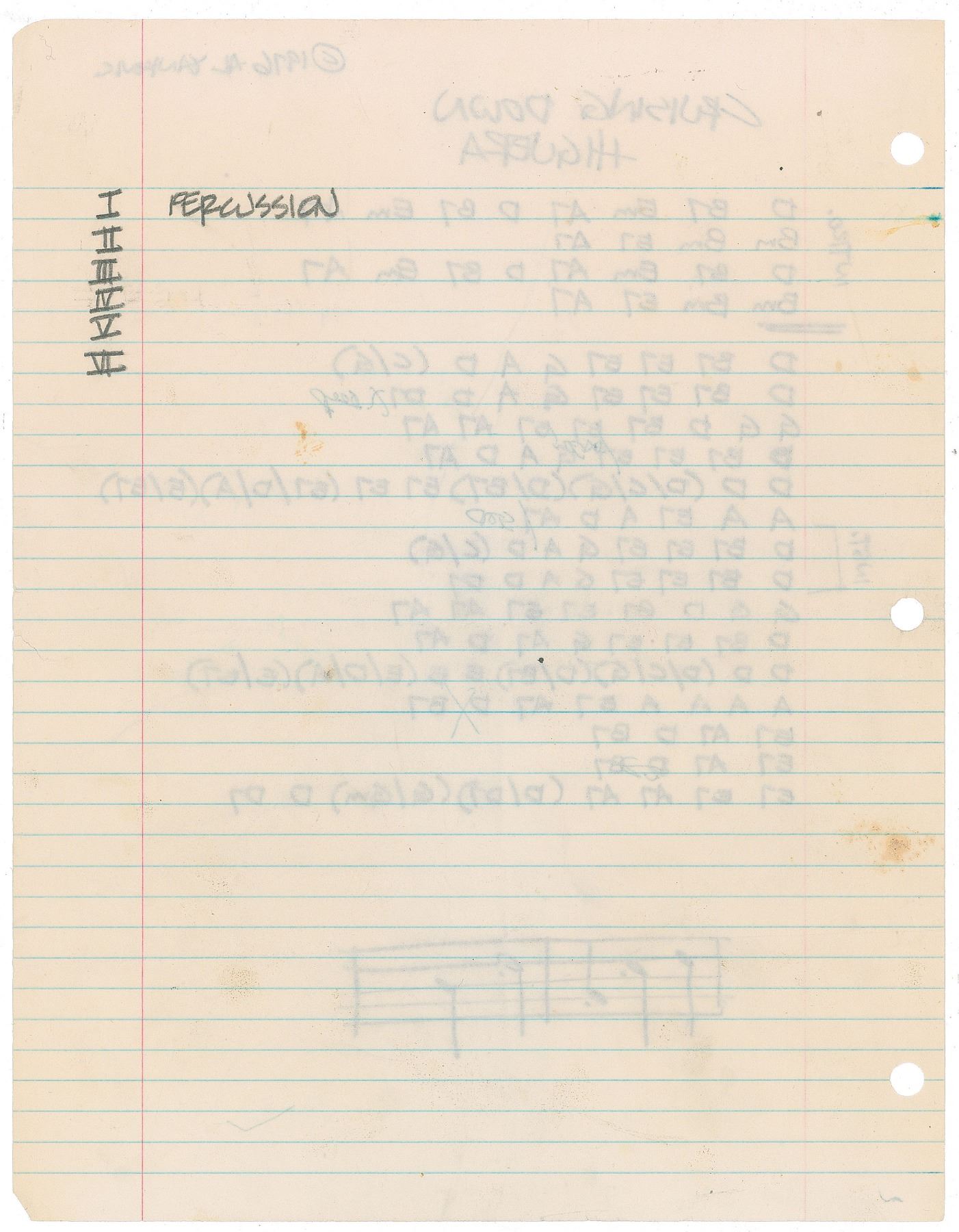 A small note page containing handwritten music bars and chorus for “My Bologna,” a parody of The Knack’s ‘My Sharona.’ This small page was used as a ‘cheat sheet’ by Yankovic and his band, an order reference for the verses of the song. In overall fine condition. Weird Al recently spoke about his Dr. Demento tape and the incarnation of ‘Belvedere Cruising’ on an episode of Jay Leno’s Garage. A preview link can be found here: https://www.youtube.com/watch?v=1yOPFC5xYMY