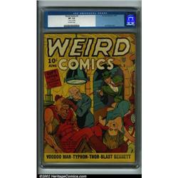 Weird Comics #3 (Fox, 1940) CGC VF- 7.5 Off-white pages. Here is yet another fantastic early issue featuring a Joe Simon cover. This is a beautiful book with only minor wear; the pages are supple and the book has an overall fresh appearance. Overstreet 2002 VF 8.0 value = $725. Important notice: We expect to be auctioning lots at the rate of 200-250 per hour. Sometimes eBay Premier live bid software cannot keep up with that pace, so we strongly recommend that you place a realistic proxy bid now as insurance to avoid disappointment. Also please note that all Heritage/CAA lots purchased through eBay Premier carry a 20% Buyer's Premium.