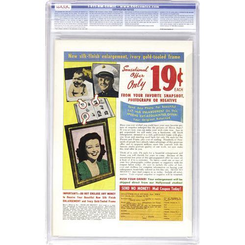 50. Since we cannot examine encapsulated notes or comics, they are sold "as is" without our grading opinion, and may not be returned for any reason. Auctioneer shall not be liable for any patent or latent defect or controversy pertaining to or arising from any encapsulated collectible. In any such instance, purchaser's remedy, if any, shall be solely against the service certifying the collectible.