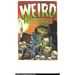 Weird Mysteries #7 (Gillmor, 1953) Condition = VG+. The very first story in this issue illustrates clearly why many people thought the comic publishing community needed some censorship in the days before the Code. The last panel of the story show a mother saying, "The only way to a man's heart is through his stomach! Here, take it!" as she hands it to her daughter. This issue also contains several full "headlight" panels (including one illustrated in Seduction of the Innocent) and other treats. Overstreet 2002 GD 2.0 value = $75; FN 6.0 value = $225. Important notice: We expect to be auctioning lots at the rate of 200-250 per hour. Sometimes eBay Premier live bid software cannot keep up with that pace, so we strongly recommend that you place a realistic proxy bid now as insurance to avoid disappointment. Also please note that all Heritage/CAA lots purchased through eBay Premier carry a 20% Buyer's Premium. Please make sure you read the Terms and Conditions.