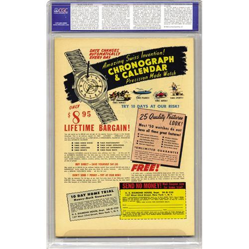 <B>Weird Science #15 Gaines File pedigree 10/12 (EC, 1952) CGC NM 9.4 Off-white to white pages.</B></I> Al Williamson made his first contribution to <B>Weird Science</B></I> with this issue, starting things off with a typically senses-shattering splash panel. Another highlight is a Jack Kamen-drawn tale in which a nerd gets a "personal harem kit" in the mail - EC knew what their readers wanted, all right! There are also stories drawn by Joe Orlando and Wally Wood, plus a Wood cover. Overstreet 2006 NM- 9.2 value = $560. CGC census 5/06: 1 in 9.4, 3 higher. <BR><BR><B>Important notice:</B> Heritage usually auctions material at the rate of 200-250 lots per hour. On some occasions eBay Live bid software or the Internet may not be able to keep up with the pace of the auction. We recommend placing a realistic absentee bid now as insurance to avoid disappointment. Occasionally the auctioneer may eliminate or reject an eBay Live bid, and the auctioneer may also reopen a lot after the close of the eBay live bidding (usually because we missed an audience bid), and may reject your bid even if it shows you as the winning bidder. By bidding via eBay Live, you agree that Heritage may award the lot to another bidder at its sole discretion under the circumstances described above or any other reasonable circumstances. Since eBay bids are not shown to us until we open the lot on the floor, we treat those bids just like floor bids. In most cases the floor responds before the eBay bid is presented to us, due to Internet lag time, so for consistency we have made it a policy that floor bids are always considered first over tie eBay live bids. Also please note that all Heritage lots purchased through eBay Live carry a 22.5% Buyer's Premium. Please make sure you read the Terms and Conditions before you bid. This lot is being auctioned in conjunction with a live floor auction by Heritage Auction Galleries. All final auction and invoice information will be supplied by Heritage Auction Galleries, and all other information should be considered preliminary. Lot:41001 <BR><BR><B>Winning Notification and Billing:</B> After the FINAL session in this auction is complete, Heritage will send e-mail and snail mail invoices. This process normally takes several days. All final auction and invoice information will be supplied by Heritage Auction Galleries, and all other information should be considered preliminary. <BR><BR>This auction will be conducted on a live auction floor and over the Internet through eBay Live. If you choose to place an absentee bid, please take a moment to <font color='#0000ff'><u><a href='http://pages.ebay.com/liveauctions/help/before/laabsentee.html'>learn how eBay Live absentee bidding works</a></u></font><font color='#000000'>