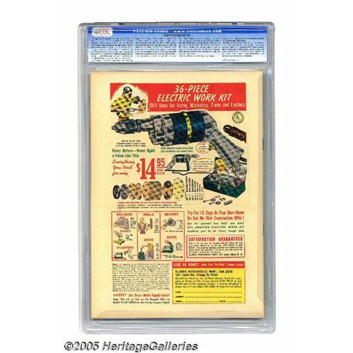 <B>Weird Science #6 Gaines File pedigree (EC, 1951) CGC NM 9.4 White pages.</B></I> No one drew goofy-looking alien creature covers better than Al Feldstein, and here's one of his best! Inside, there's cool art by Wally Wood, Harvey Kurtzman, and Jack Kamen, plus Feldstein's classic ""Spawn of Venus"" story. Although CGC recognizes this as a Gaines File copy, no certificate accompanies the book. Overstreet 2005 NM- 9.2 value = $695. CGC census 9/05: 1 in 9.4, 1 higher. <BR><BR><B>Important notice:</B> Heritage usually auctions material at the rate of 200-250 lots per hour. On some occasions eBay Live bid software or the Internet may not be able to keep up with the pace of the auction. We recommend placing a realistic absentee bid now as insurance to avoid disappointment. Occasionally the auctioneer may eliminate or reject an eBay Live bid, and the auctioneer may also reopen a lot after the close of the eBay live bidding (usually because we missed an audience bid), and may reject your bid even if it shows you as the winning bidder. By bidding via eBay Live, you agree that Heritage may award the lot to another bidder at its sole discretion under the circumstances described above or any other reasonable circumstances. Since eBay bids are not shown to us until we open the lot on the floor, we treat those bids just like floor bids. In most cases the floor responds before the eBay bid is presented to us, due to Internet lag time, so for consistency we have made it a policy that floor bids are always considered first over tie eBay live bids. Also please note that all Heritage lots purchased through eBay Live carry a 20% Buyer's Premium. Please make sure you read the Terms and Conditions before you bid. This lot is being auctioned in conjunction with a live floor auction by Heritage Galleries & Auctioneers. All final auction and invoice information will be supplied by Heritage Galleries & Auctioneers, and all other information should be considered preliminary. Lot:3161 <BR>