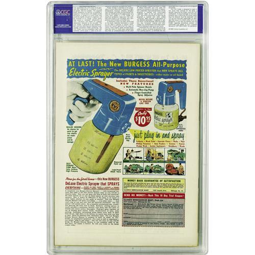 <B>Weird Science #8 Gaines File pedigree 4/12 (EC, 1951) CGC NM+ 9.6 Off-white pages.</B></I> Have we mentioned lately that these super-high grade Gaines File Copies have amazing cover colors, the sharpest of corners, and like-new page quality? Consider it mentioned! This issue boasts an Al Feldstein cover, plus Feldstein, Wally Wood, Jack Kamen, and George Roussos story art. Overstreet 2006 NM- 9.2 value = $750. CGC census 3/06: 1 in 9.6, 3 higher.