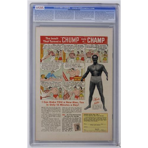 Wally Wood did only two covers for the title, but what a great one <I>this</B></I> is! The first of three adaptations of the "Adam Link" series by Otto Binder is featured. Story artwork came from Wood, Joe Orlando, Jack Kamen, and Reed Crandall. Overstreet 2006 NM- 9.2 value = $510. CGC census 12/06: 3 in 9.6, 1 higher.<BR><BR><b>Shipping:</b> Slabbed Comic (<a target="_blank" href="http://www.heritageauctions.com/common/shipping.php">view shipping information</a>)