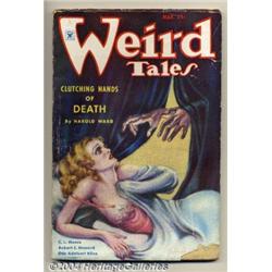 <table><tr><td><TABLE cellSpacing=0 cellPadding=0 width="100%" bgColor=#000000 border=0><TBODY> <TR><TD width="100%"><TABLE cellSpacing=1 cellPadding=3 width="100%" border=0><TBODY><TR><TD width="100%" bgColor=#79735c><FONT face=arial color=#ffffff size=3><B>Description</B> </FONT></TD></TR><TR><TD width="100%" bgColor=#ffffff><FONT face=arial size=2><B>Weird Tales (Pulp) Group (Popular Fiction, 1940) Condition: Average VG-.</B></I> Here is an excellent run of six consecutive issues of this tremendously collectible pulp title. All have wonderful cover art from Margaret Brundage. The lot consists of the issues from January 1935, February 1935, March 1935, April 1935, May 1935, and June 1935. All appear to have been trimmed on the open edge only, probably to facilitate reading more than for any aesthetic reasons; the magazines are a lot easier to page through with a smooth outer edge. Notable contents include the first professionally published story by Robert Bloch, several Robert E. Howard stories, and the story "Out of the Eons" by H. P. Lovecraft under the name of Hazel Heald. These pulps all have wonderful paper quality, off-white and completely supple; they have the appearance of very strong VG+ copies, but we've knocked the grades down a bit for the outer edge trimming. The Ultimate Guide to the Pulps VG value for group = $595. <B>Estimate: $500-up</B> (6 items) </FONT></TD></TR></TBODY></TABLE></TD></TR></TBODY></TABLE><BR><!--<a name="PricesRealized"></a> <table width="100%" border="0" cellspacing="0" cellpadding="0" bgcolor="#000000"> <tr> <td width="100%"> <table width="100%" border="0" cellspacing="1" cellpadding="3"> <tr> <td width="100%" bgcolor="#79735C"> <a name="PR"> <font face="arial" size="3" color="#FFFFFF"> <b>Previous Prices from Heritage Auctions</b> </td> </tr> <tr> <td bgcolor="#F6F6ED"> No Prior Data Recorded </td> </tr> <tr> <td bgcolor="#FFFFFF"> <font face="arial" size="1""> PLEASE NOTE: All prices realized reflect the final hammer price PLUS the buyer's premium in auctions that charge a buyer's premium. Each item has a notation at the top of the listing indicating whether that lot included a buyer's premium. Example: A item that sells with a final hammer price of $100 and a 15% buyer's premium will display with a price realized of $115. All information listed is intended to be as accurate as possible, but errors are possible. Please use this guide carefully and inform us of any inaccuracies. </td> </tr> </table> </td> </tr> </table>
