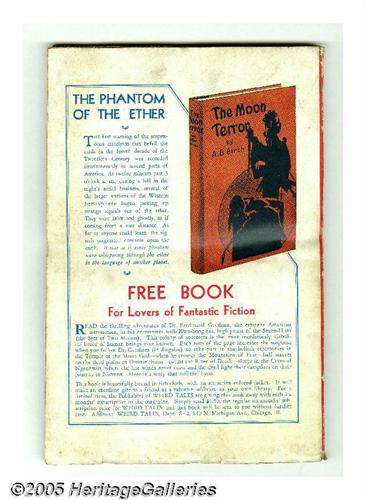 <B>Weird Tales (Pulp) Jan 1934 (Popular Fiction, 1934) Condition: Apparent FN.</B></I> This tantalizing pulp features a classic cover by Margaret Brundage. And the attractions don't end with the cover, as this issue features a Conan the Barbarian story by Robert E. Howard -- "Rogues in the House." This pulp has a clean, glossy cover and tight spine, with supple cream pages. The apparent grade is due to the open edge having been trimmed, this is otherwise a truly superlative copy. The Ultimate Guide to the Pulps VG value = $100. <I>From the Collection of Chris Bell</B></I>.