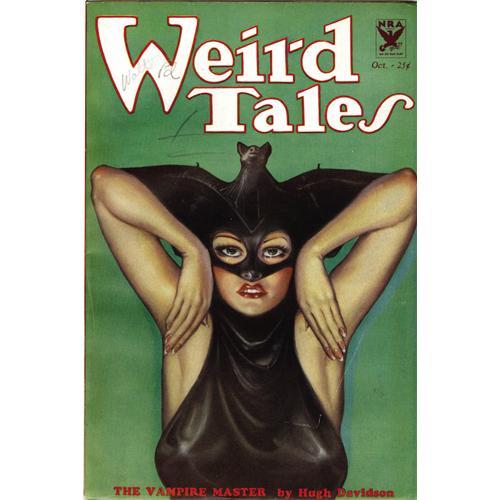 The price guide value mentioned below notwithstanding, a Fine copy of this issue sold for $3,000 in one of our recent auctions, and we think this specimen is nicer! In addition to the classic "batwoman" cover by Margaret Brundage, this one's got the sixth Conan story by Robert E. Howard to be published in <B>Weird Tales</B></I>, namely "The Pool of the Black One." Bookery's Guide to Pulps Fine value = $1,000. <I>From the John McLaughlin Collection.</B></I><BR><BR><b>Shipping:</b> Books & Catalogs (<a target="_blank" href="http://www.heritageauctions.com/common/shipping.php">view shipping information</a>)