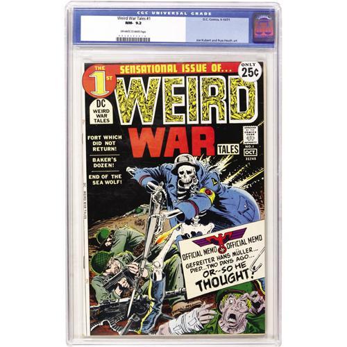 <B>Weird War Tales #1 (DC, 1971) CGC NM- 9.2 Off-white to white pages.</B></I> Joe Kubert made his mark on DC war books with his legendary work on <B>Our Army at War</B></I> and the subsequent <B>Sgt. Rock</B></I> in the 1950s and 1960s, so it's only natural his 1970s work on this title was revered by a new generation of comic readers needing a release from the quagmire of the Vietnam War. A superb copy of a unique book. Overstreet 2006 NM- 9.2 value = $360. CGC census 3/07: 20 in 9.2, 16 higher.<BR><BR><b>Shipping:</b> Comics - Slabbed (certified) (<a target="_blank" href="http://www.heritageauctions.com/common/shipping.php">view shipping information</a>)