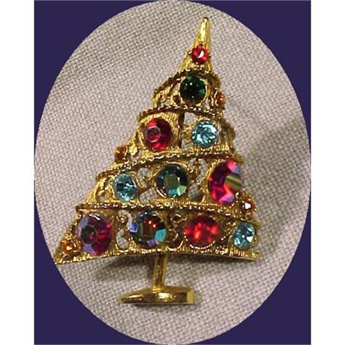 <tr><td>Title:Weiss Christmas Tree Brooch multi color aurora </td></tr>
