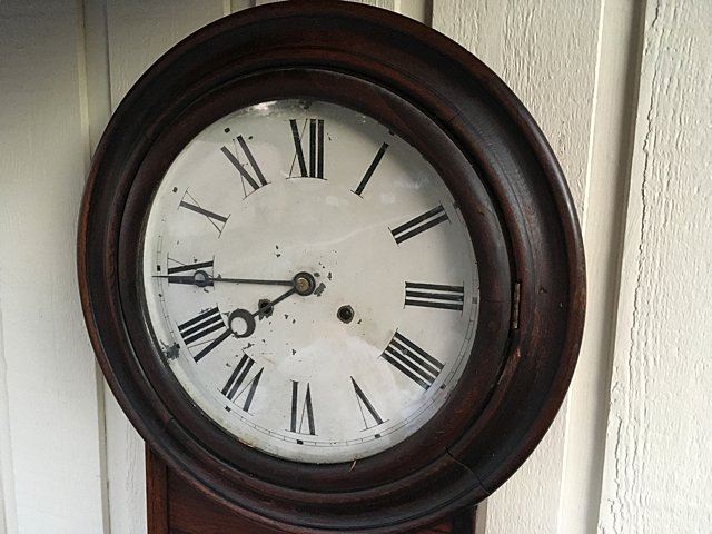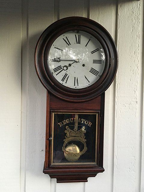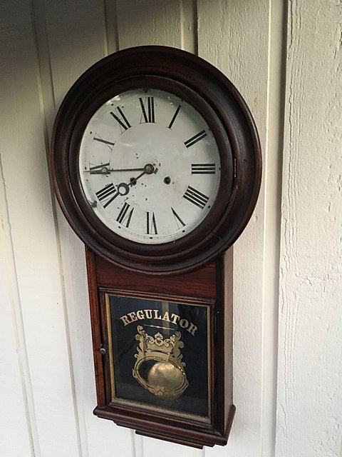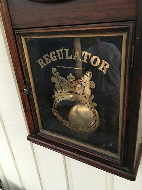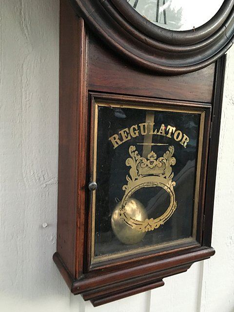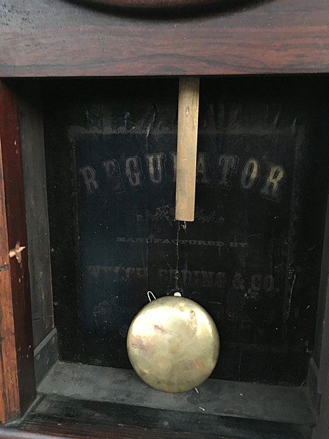 Welch Spring & Co. weight driven regulator clock with rosewood case. Measures approx. 34" tall x 17" wide x 4" deep.