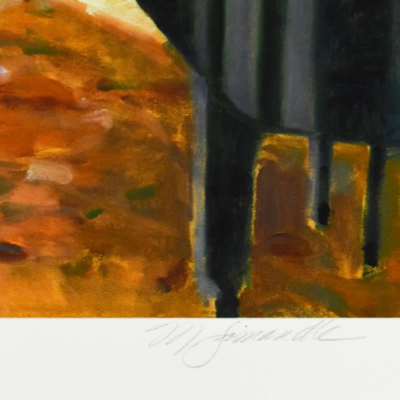 "Welcome Home" is a limited edition giclee on paper by Marilyn Simandle, numbered 39/125 and hand signed by the artist. Includes Letter of Authenticity. Measures approx. 30" x 38.5" (border), 25" x 33" (image).
