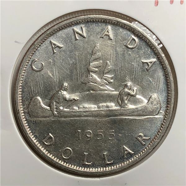 1955 Queen Elizabeth II Canadian Silver Dollar UNC FWL