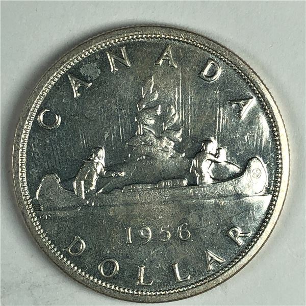 1956 Queen Elizabeth II Canadian Silver Dollar UNC