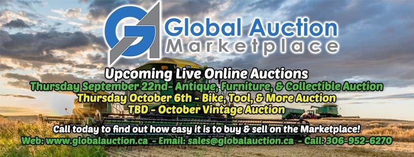 Viewing on all items in the auction is available by picture on our website, globalauction.ca, or by visiting our office at 2623B Faithfull Ave in Saskatoon during our regular business hours.