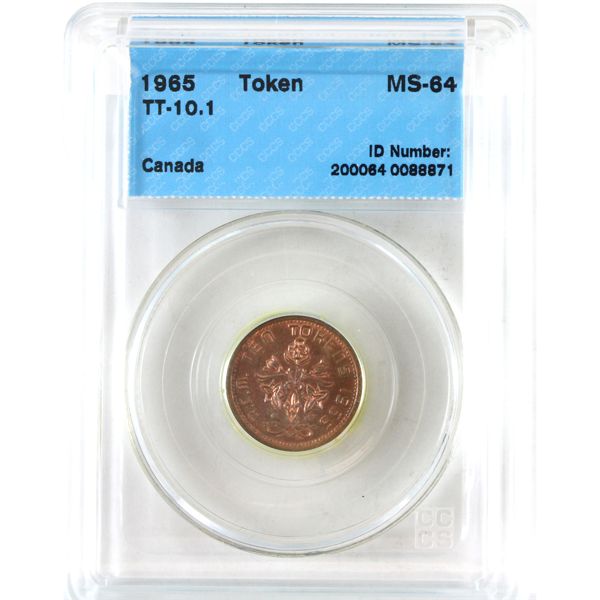 TT.10.1 1965 Test Token CCCS MS64 Copper (3.3 grams)