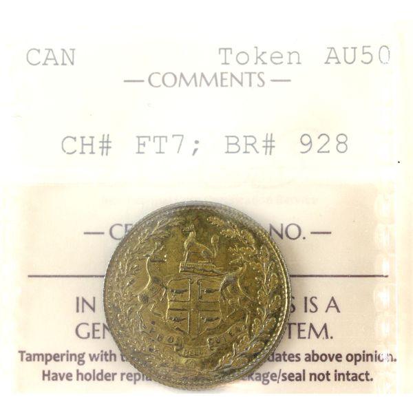 BR-724, CH-UC-6A8 1816 Upper Canada Brock Token in AU-UNC
