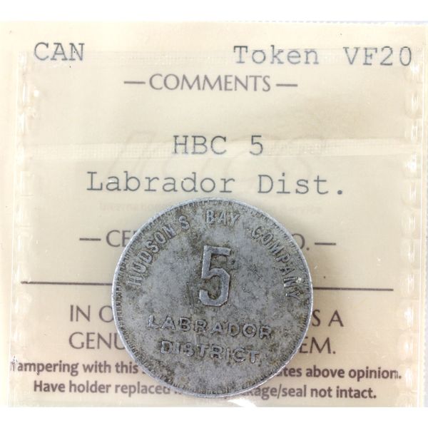 Hudson's Bay Company-Labrador Dist. 5 MB Token ICCS VF20
