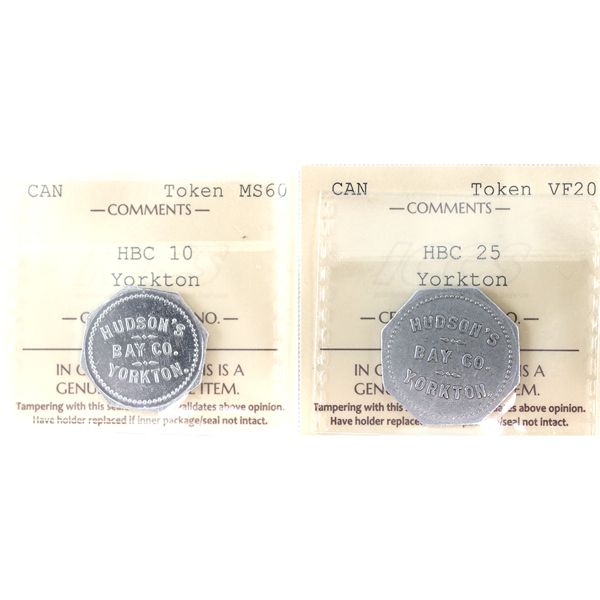 Hudson's Bay Company Yorkton 10c MS60 & 25c VF20 Both ICCS Certified. 2pcs.