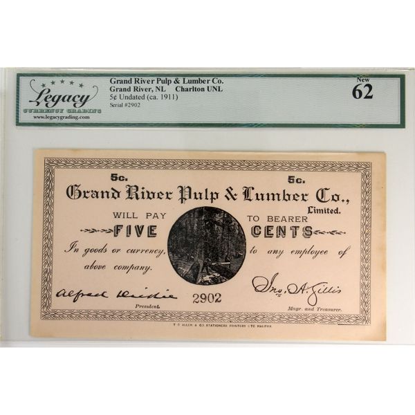Grand River Pulp & Lumber Co. ND (c.1911) 5c Grand River NL Legacy CUNC62 SN: 2902