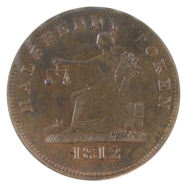 BR-880. CH-NS-8A1 1814 For the Convenience of Trade Half Penny Copper Token VF-EF