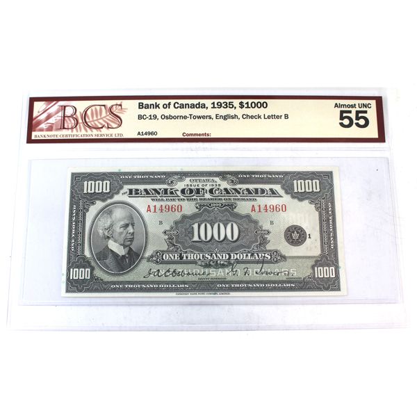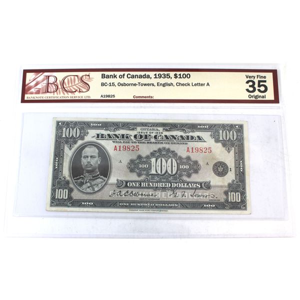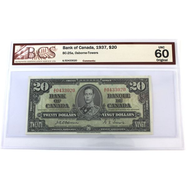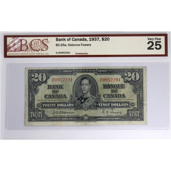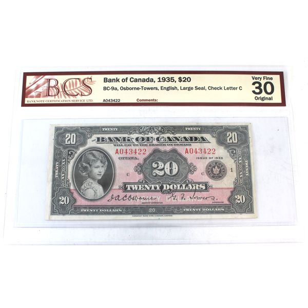 BC-9a 1935 $20 English BCS VF30 Original Osborne-Towers, Large Seal SN: A043422 Check Letter C