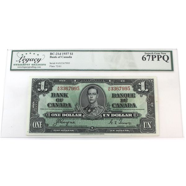 Lot 998 DC-12 1897 $1 PMG CUNC63 Various-Campbell SN: 248878 ppC. Highest graded 1897 $1 from PMG. A must have for any Dominion of Canada Collector!