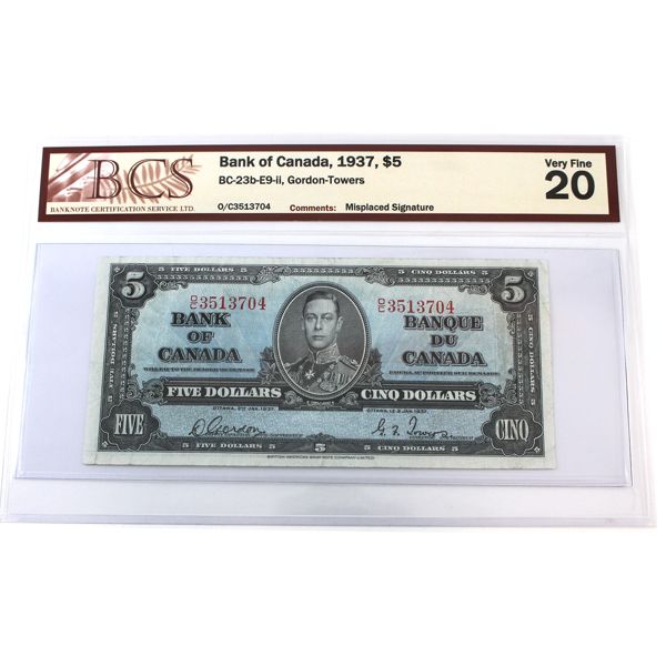 BC-9b 1935 $20 English BCS VG8 Osborne-Towers Small Seal Check Letter B SN: A186575