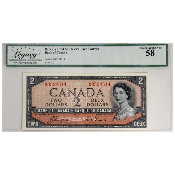 BC-30a 1954 $2 Devil's Face Legacy Choice AU58 Coyne-Towers SN: A/B0534514