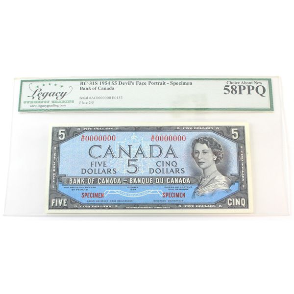 BC-31S 1954 $5 SPECIMEN Legacy Choice AU58 PPQ Devil's Face SN: A/C0000000