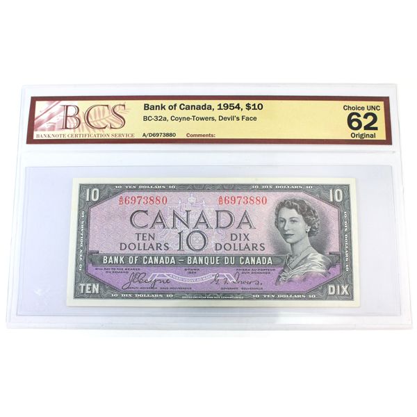BC-32a 1954 $10 Devil's Face BCS CUNC62 Original Coyne-Towers SN: A/D6973880