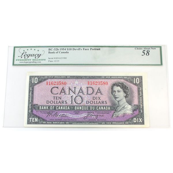 BC-32b 1954 $10 Devil's Face Legacy AU58 Beattie-Coyne SN: G/D1623580