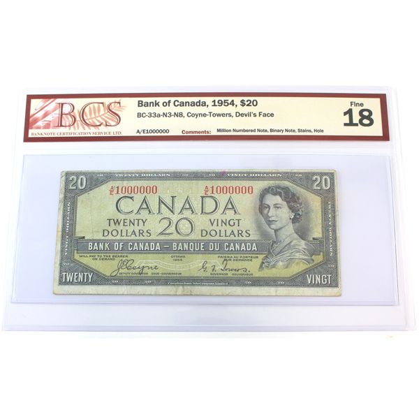 BC-33a-N3-N8 1954 $20 'MILLION #' A/E1000000 Binary Note BCS F18 Coyne-Towers, Devil's Face