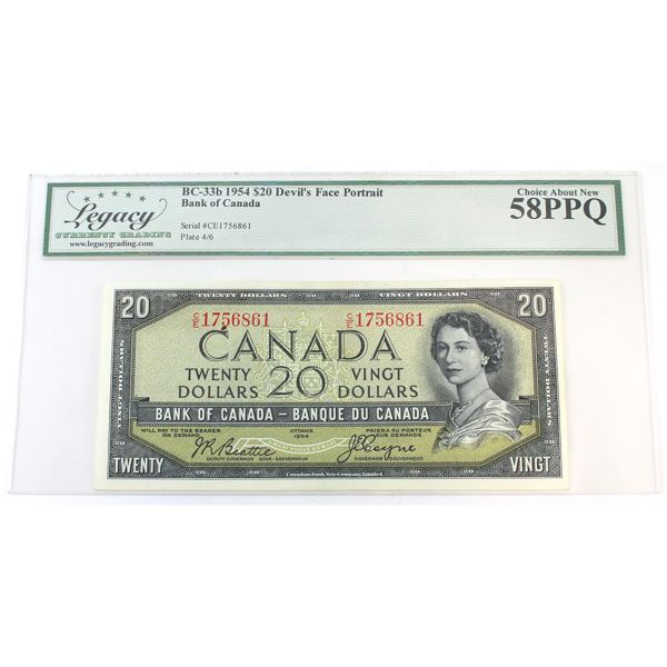 BC-33b 1954 $20 Devil's Face Legacy AU58 PPQ Beattie-Coyne SN: C/E1756861