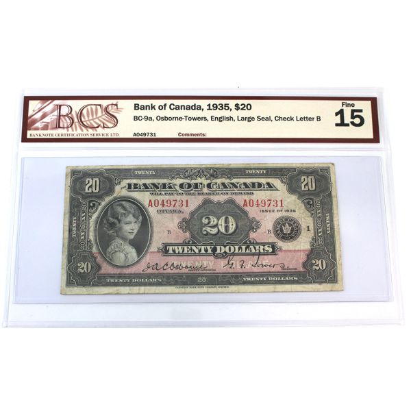 BC-9a 1935 $20 English BCS F15 Osborne-Towers Large Seal Check Letter B SN: A049731