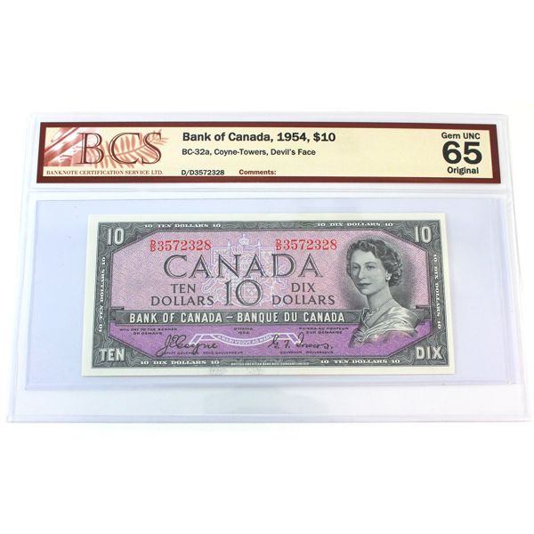 BC-32a 1954 $10 BCS GEM UNC65 Original Coyne-Towers Devil's Face SN: D/D3572328
