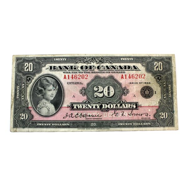 BC-9b 1935 $20 VF Small Seal Osborne-Towers SN: A146202