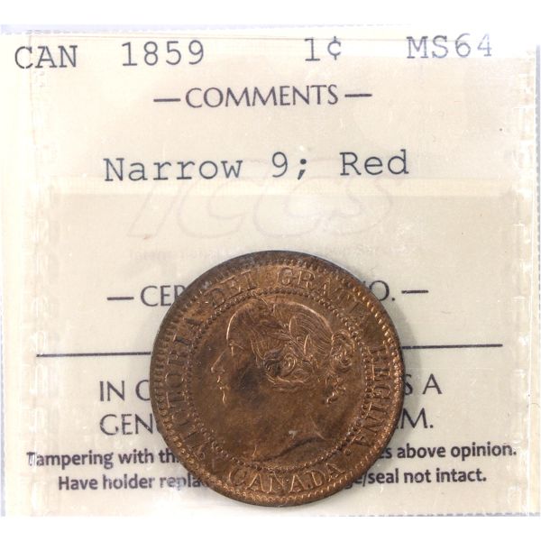 1-cent 1859 Narrow 9 ICCS MS64 Red