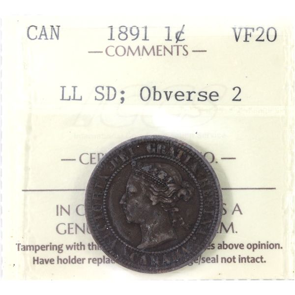 1-cent 1891 LL SD, Obverse 2 ICCS VF20