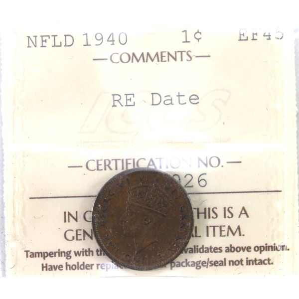 Newfoundland 10-cent 1940 Re-Engraved Date ICCS MS62. Bright coin with strong lustre