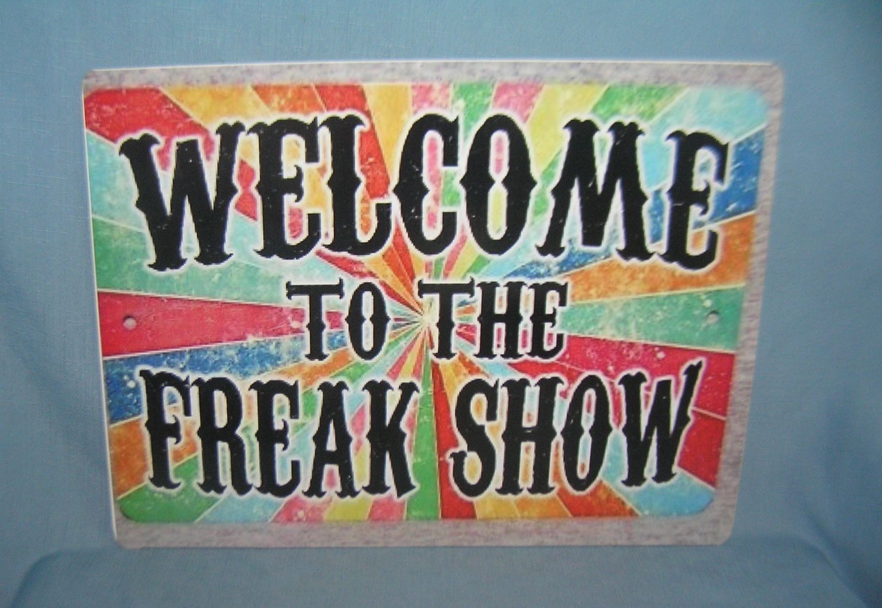 Welcome to the Freak Show retro style advertising sign printed on PVC hard board these signs are auctioned for there decorative and display purposes 12 by 16 est. value $50.00-$60.00