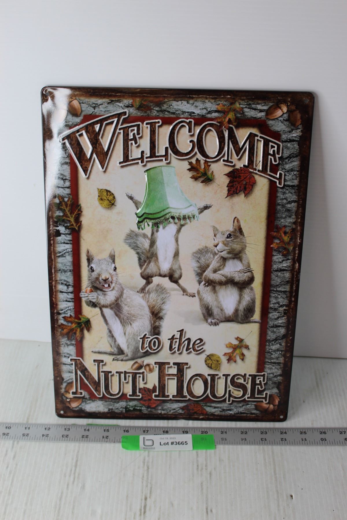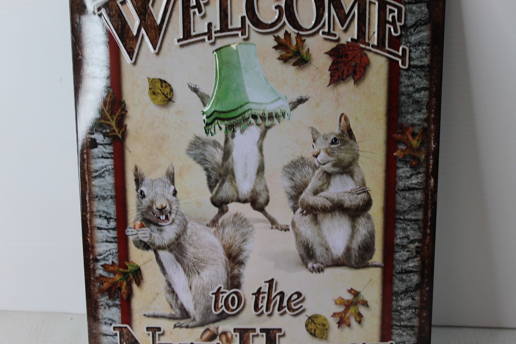 Welcome to the Nut House Tin Squirrel Sign - 12" x 16 1/2"