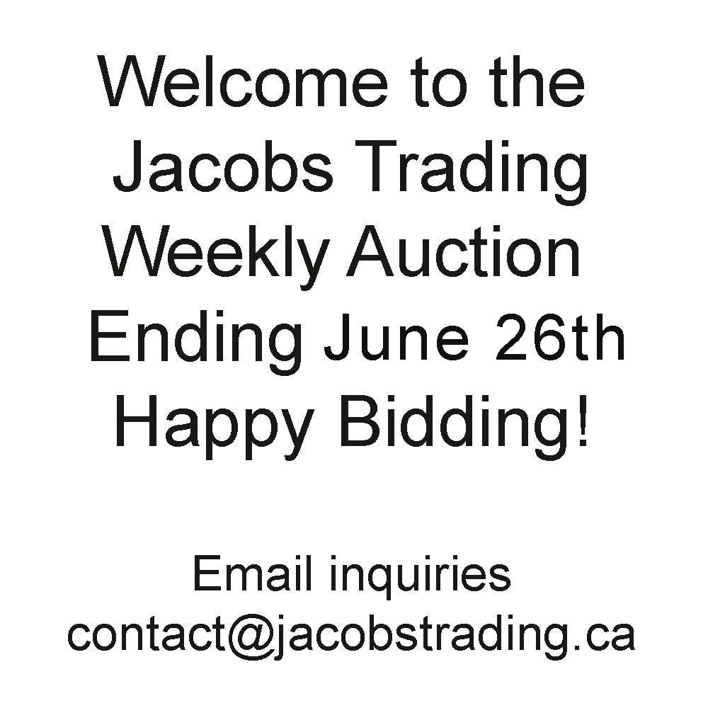 All items are final sale. Live viewing by appointment only. Email contact@jacobstrading.ca or call 204-667-8313.