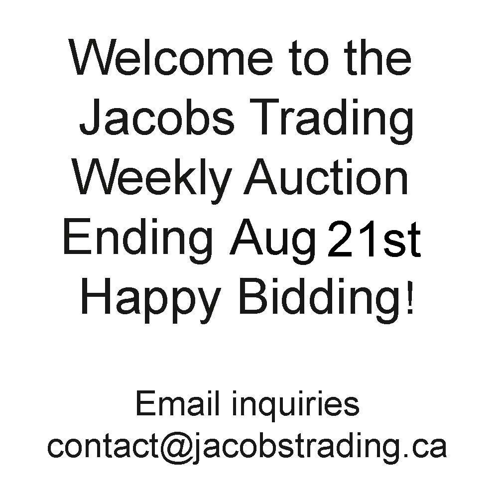 All items are final sale. Live viewing by appointment only. Email contact@jacobstrading.ca or call 204-667-8313.